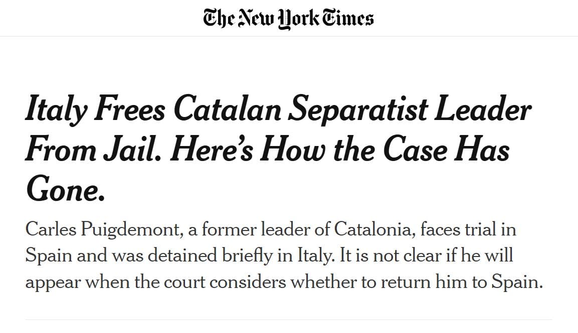 Martín Palladino consultado por The New York Times sobre la detención de Carles Puigdemont Sept. 25, 2021 – Por Raphael Minder, Emma Bubola y Gaia Pianigiani | Edición impresa THE NEW ...