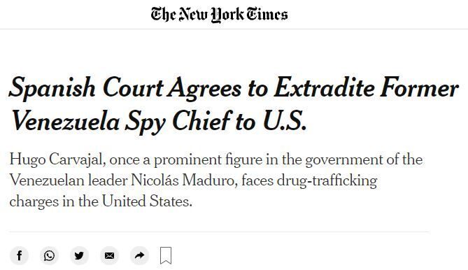 The New York Times consulta a nuestros especialistas sobre la extradición de Carvajal Oct. 20, 2021 – Por Raphael Minder THE NEW YORK TIMES, consultó a Martín Ignacio Palladino, Abogad...
